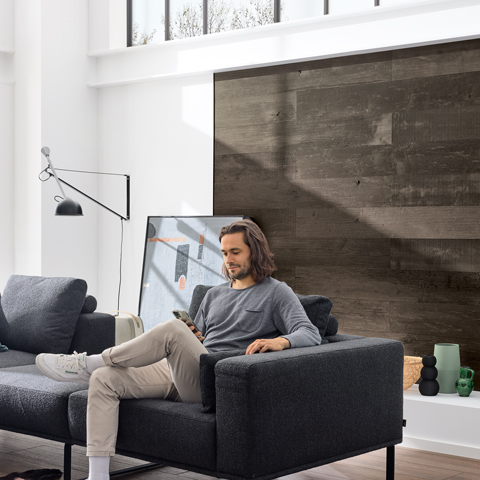 Dieses Sortiment umfasst für den Innenbereich Bodenbeläge, Wandverkleidungen, Türen sowie für den Außenbereich Produkte wie Terrassendielen und Sichtschutzzäune.